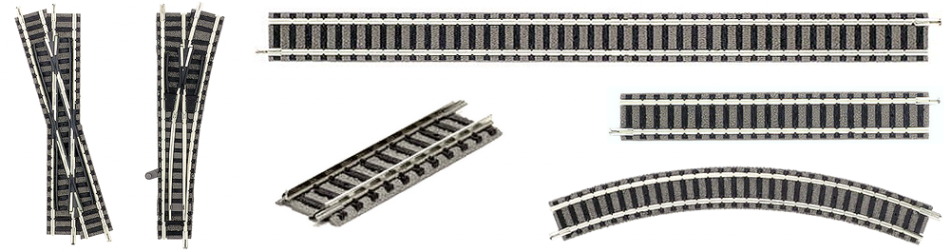 Anschlussgleis, Entkupplungsgleis (elektrisch oder handbertrieben), Gleis mit Schaltkontakt, Ausgleichsgleis, Prellbockgleis, Übergangsgleis zum Arnold Gleissystem