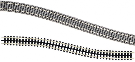 Die Vollprofil-Schienen sind aus Neusilber, das Schwellenband mit nachgebildeten Holzschwellen braun.