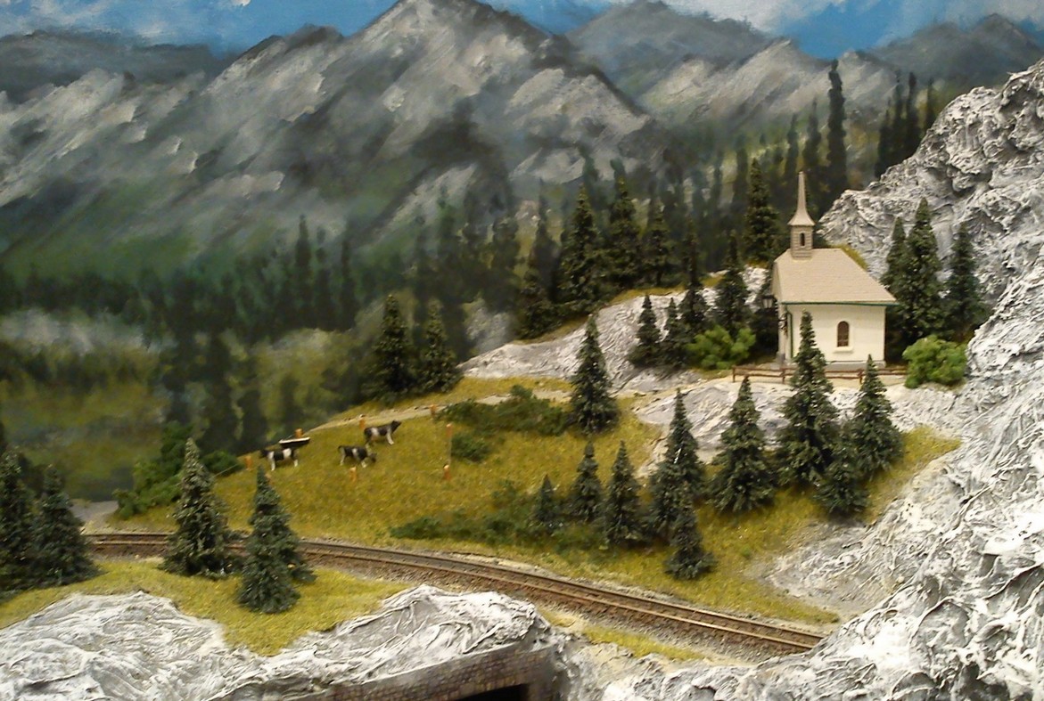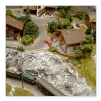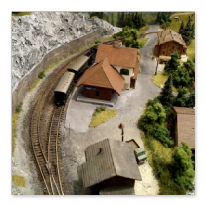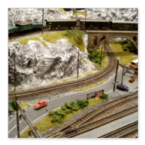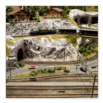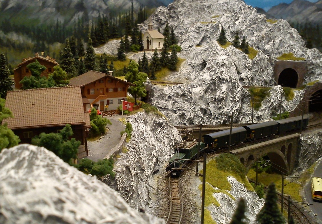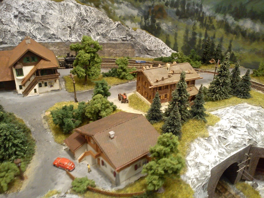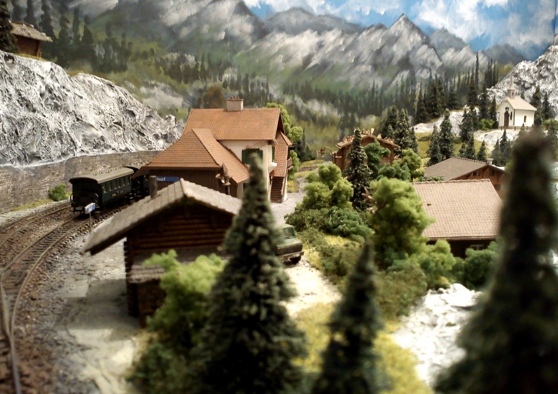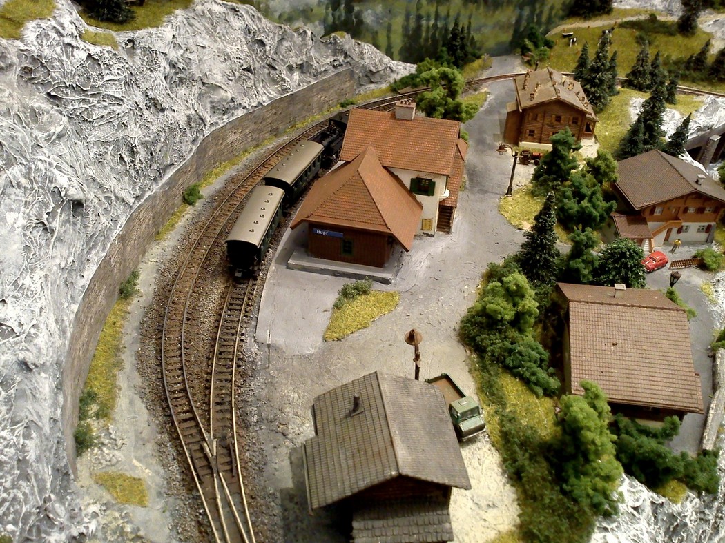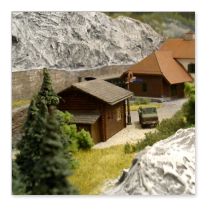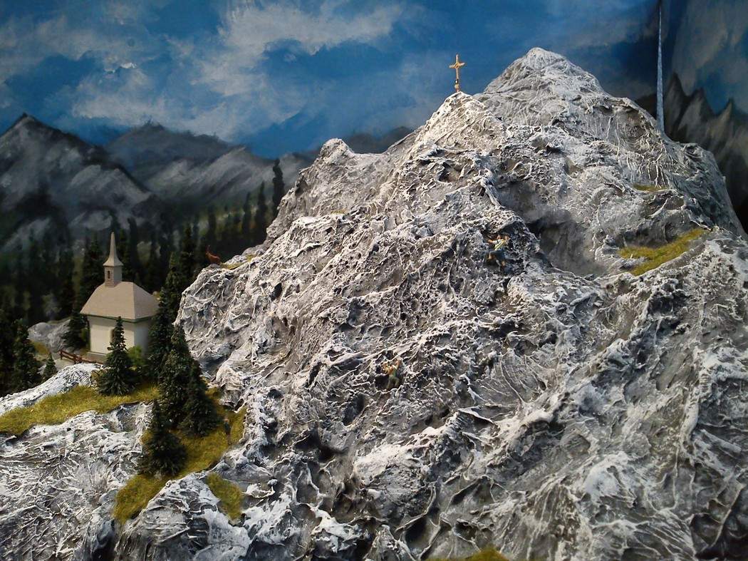 Die Idee, die dem Bau der "Gugel-Hupf-Bahn" zu Grunde lag, war eine Bergbahn mit möglichst "viel Berg" auf möglichst kleinem Raum zu realisieren. Die Anlage hat schliesslich auf nur 130 x 85 cm Platz gefunden.