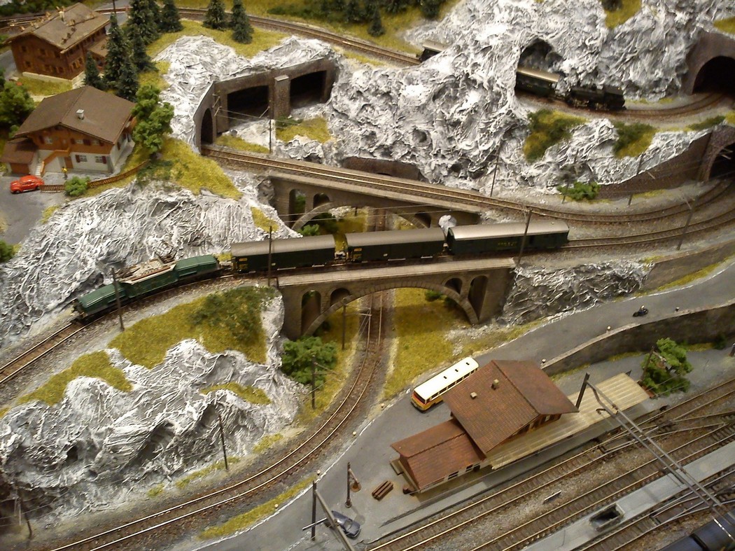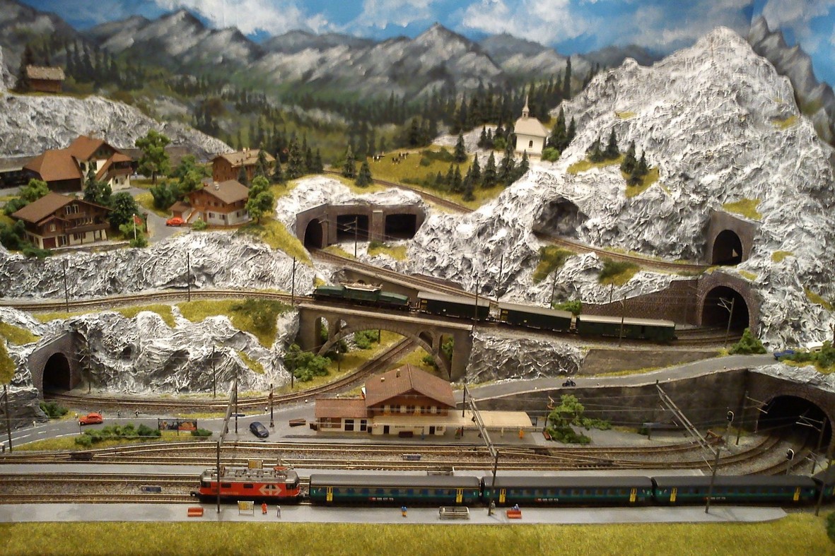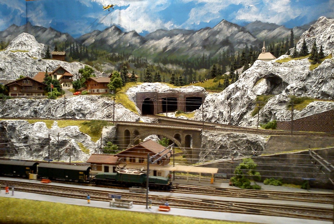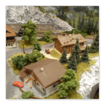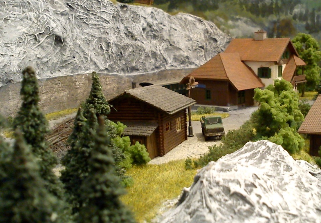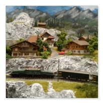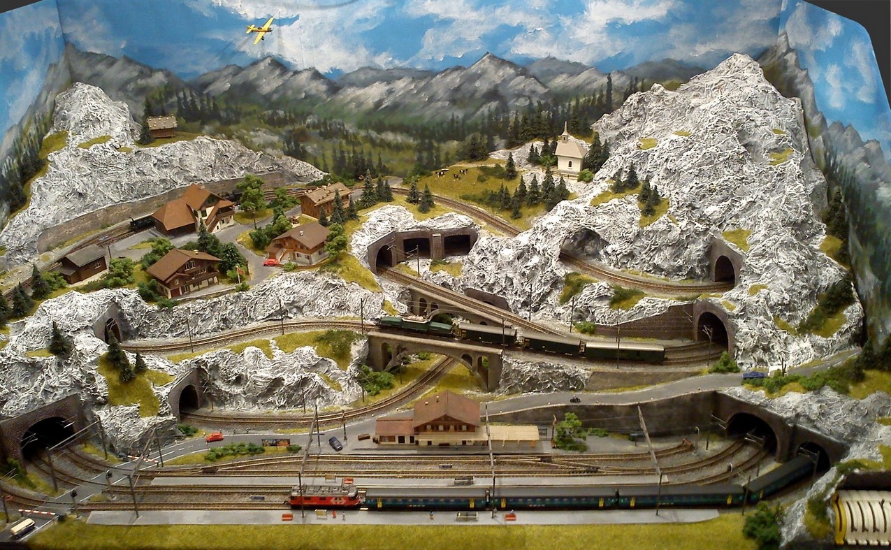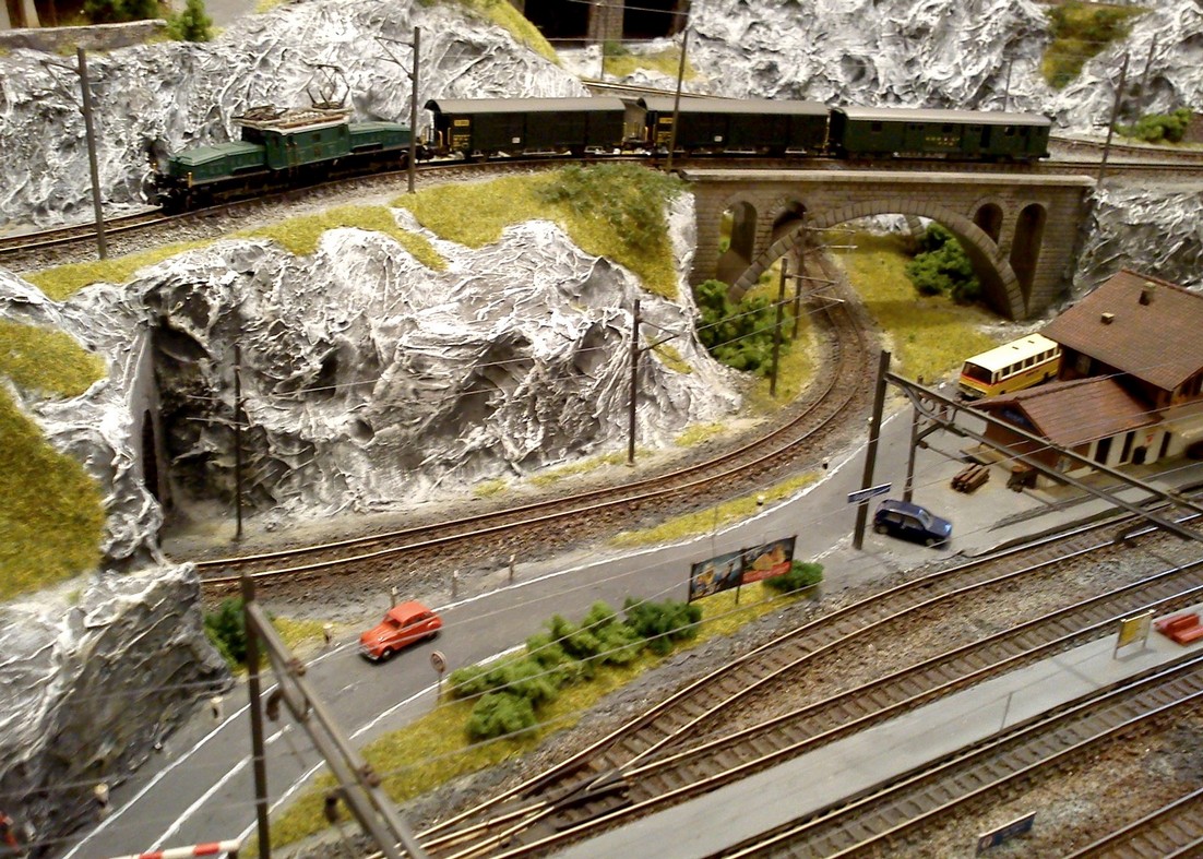 Die Idee, die dem Bau der "Gugel-Hupf-Bahn" zu Grunde lag, war eine Bergbahn mit möglichst "viel Berg" auf möglichst kleinem Raum zu realisieren. Die Anlage hat schliesslich auf nur 130 x 85 cm Platz gefunden.