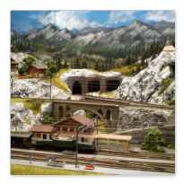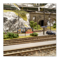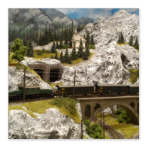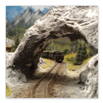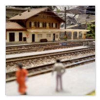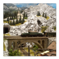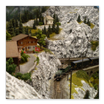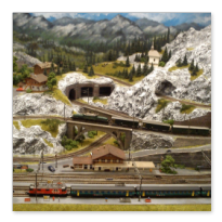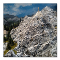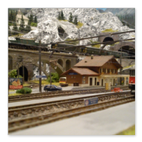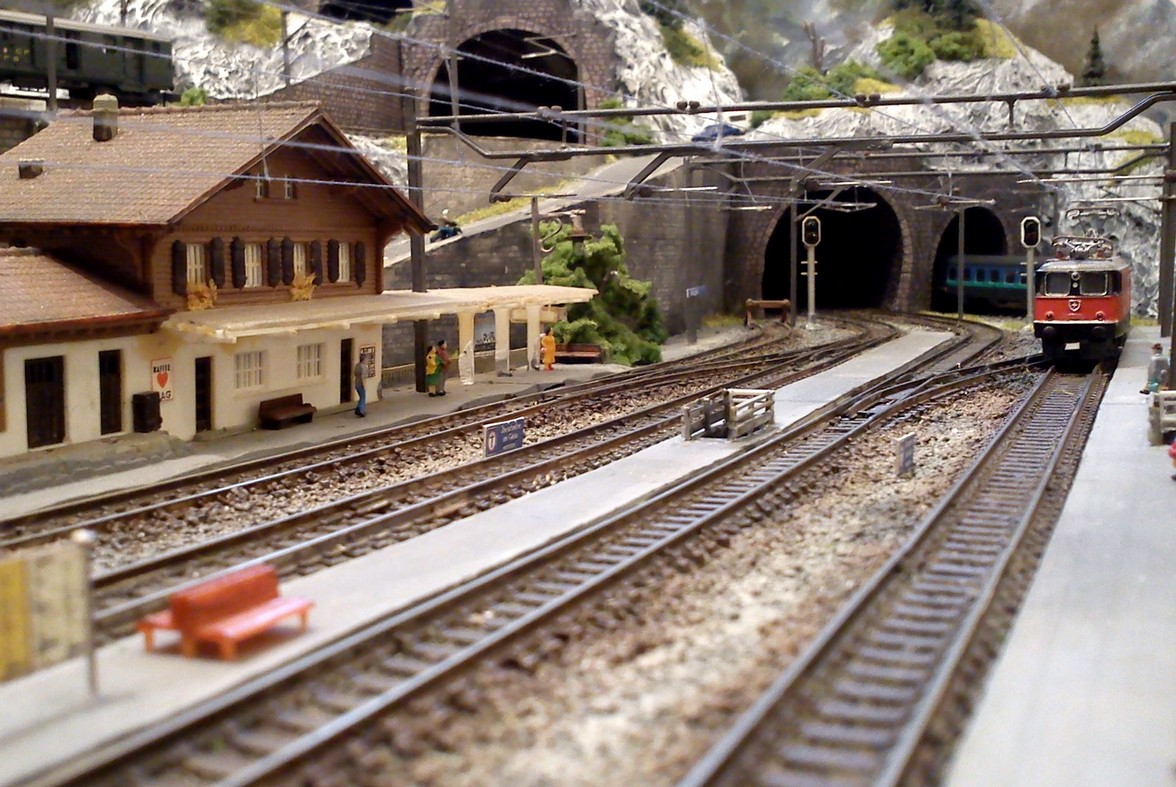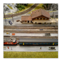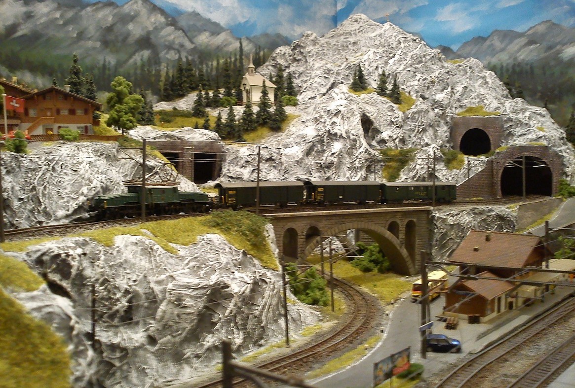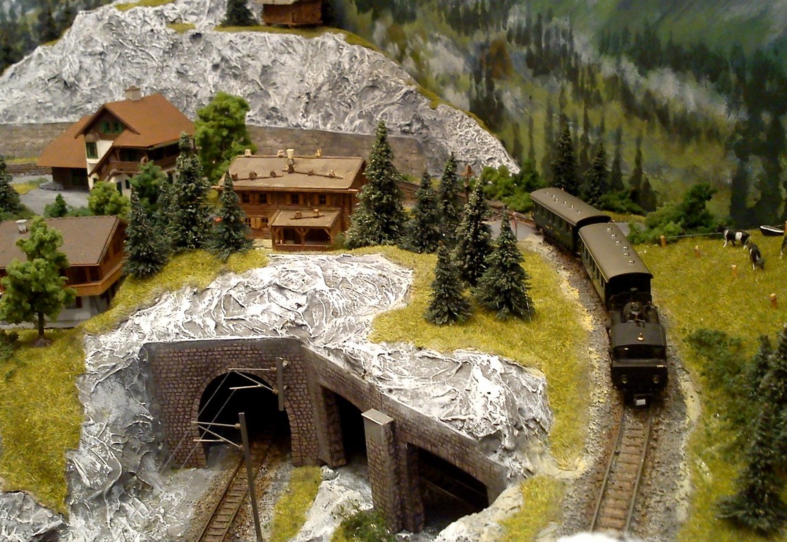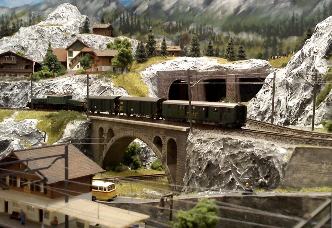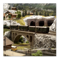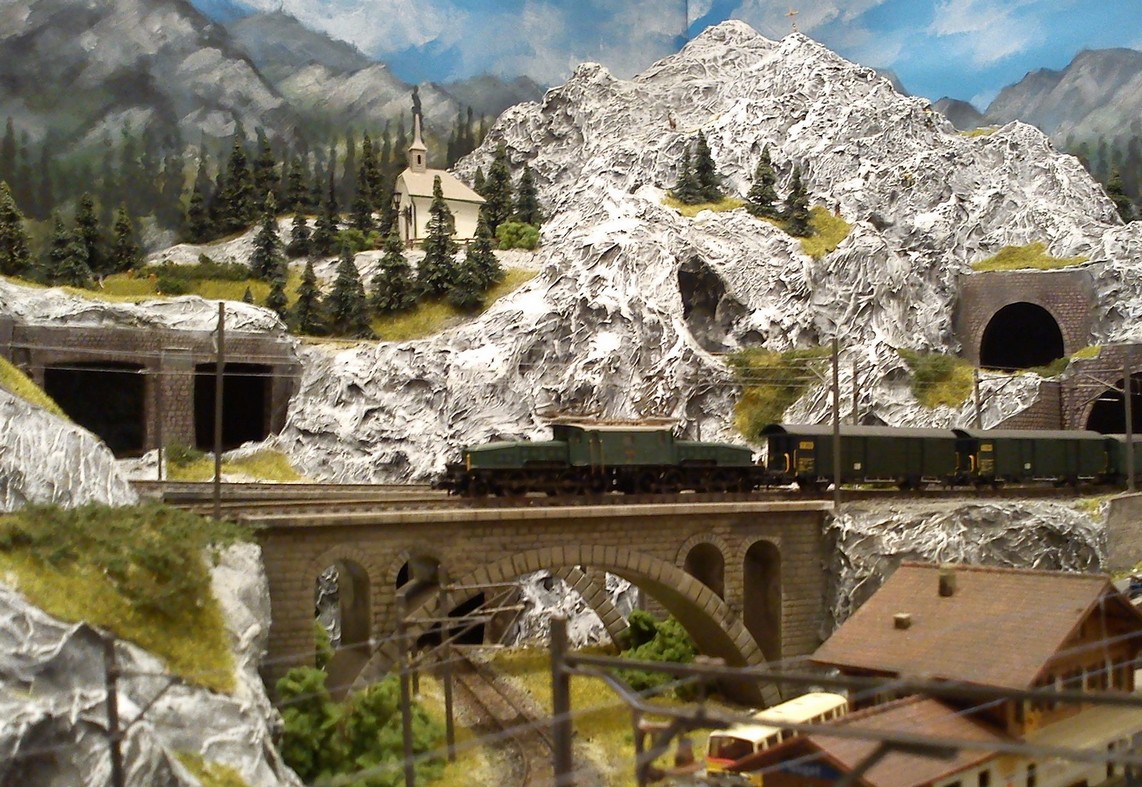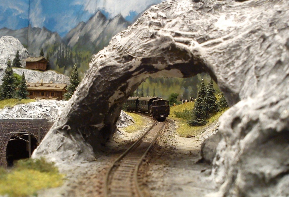 Die Idee, die dem Bau der "Gugel-Hupf-Bahn" zu Grunde lag, war eine Bergbahn mit möglichst "viel Berg" auf möglichst kleinem Raum zu realisieren. Die Anlage hat schliesslich auf nur 130 x 85 cm Platz gefunden.
