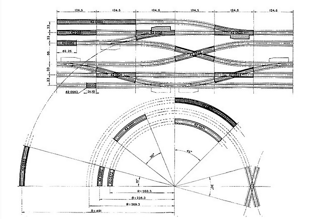 Die Skizze unten zeigt die Gleisgeometrie des alten Lima Gleissystems mit einem Parallelabstand von 33 mm.