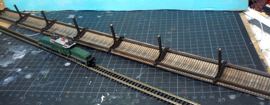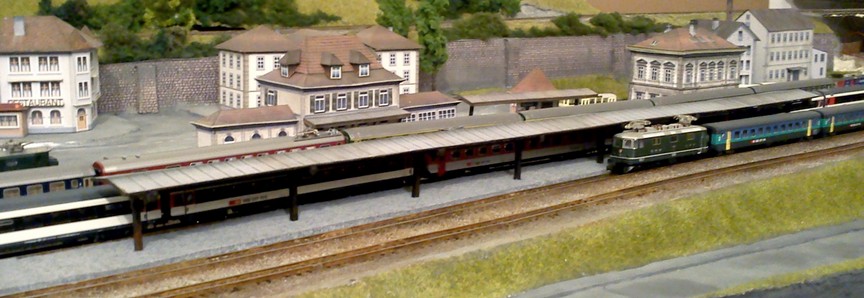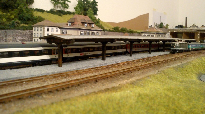 ![]() Wie vieles andere sind auch die Perrons im Rauracher Bahnhof im Eigenbau entstanden. | ||