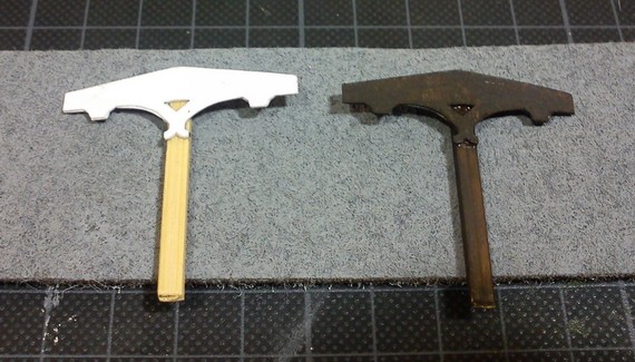 Nun können die Stützen mit Sekundenkleber zusammen gebaut und bemalt werden. Dabei erhalten sie gleich noch eine leicht rostige Patina. | ![]() | |