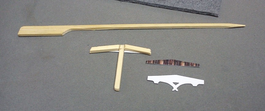 ![]() Die Einzelteile für die Dachstützen und Dachbalken. Stützen und Balken habe ich aus Vierkanthölzchen gefertigt, in diesem Falle aus Holzspiessen. Die Verblendungen habe ich am PC gezeichnet und mit einem Schneideplotter ausgeschnitten. | ||