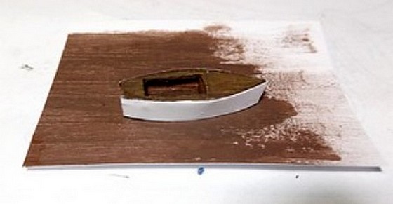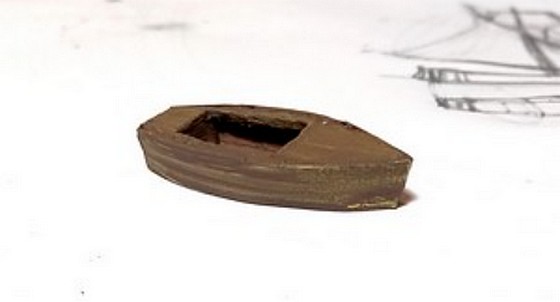 Die Beplankung besteht aus starkem Papier, das ich für die Innenseite andeutungsweise mit einer Holz-maserung bemalt habe. Ebenso habe ich das Oberdeck bemalt. | ![]() | |