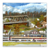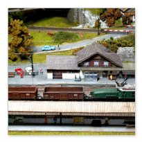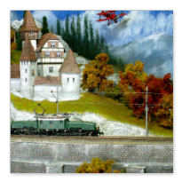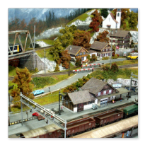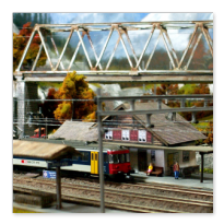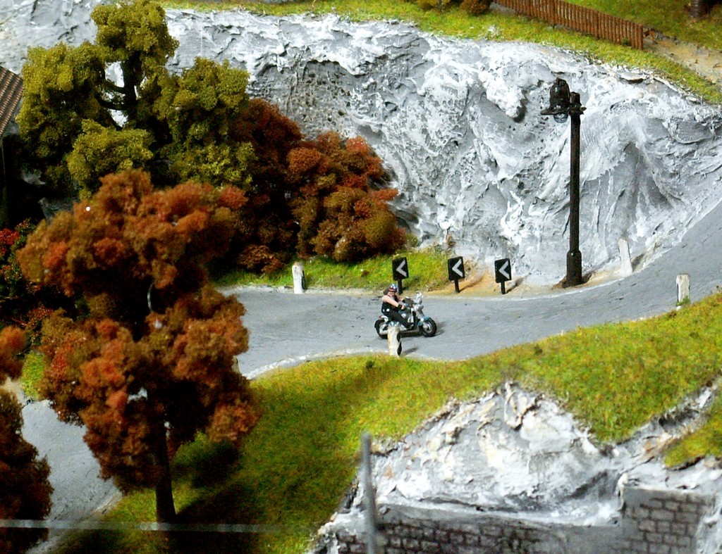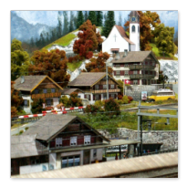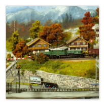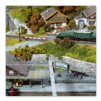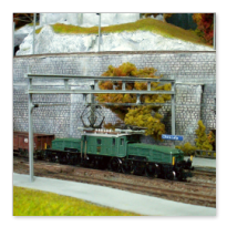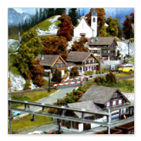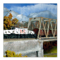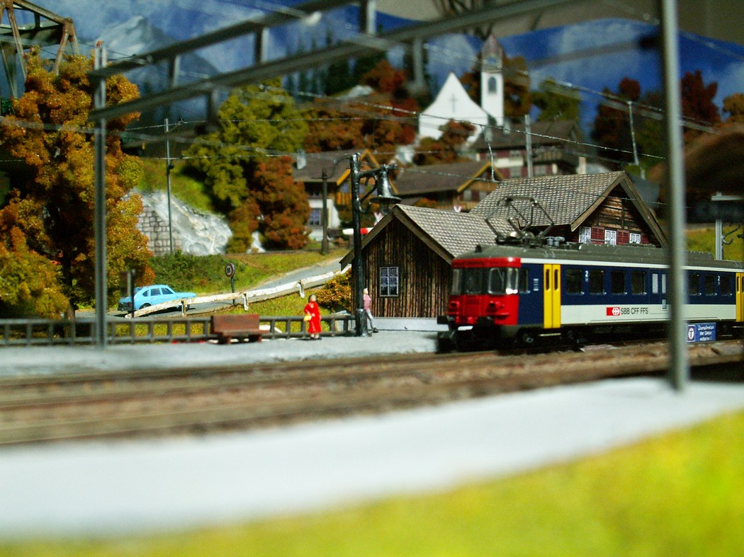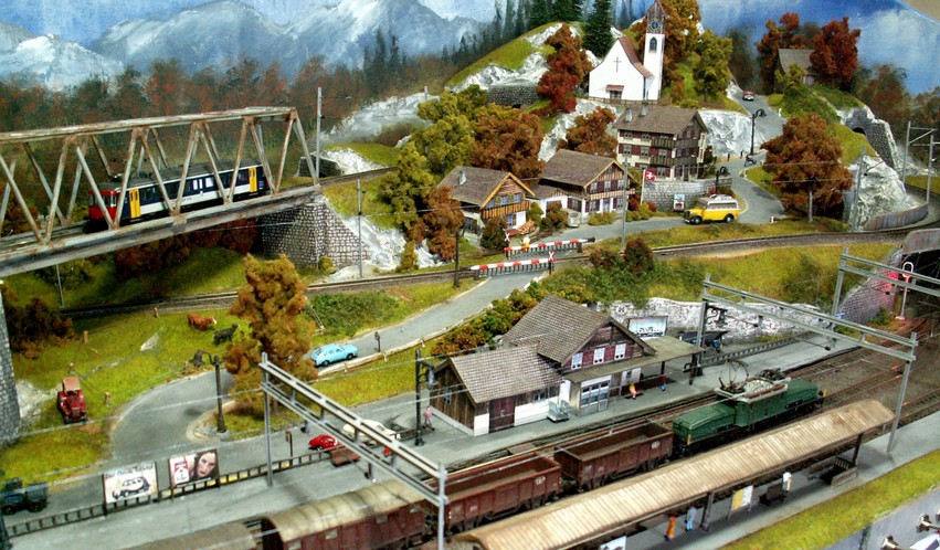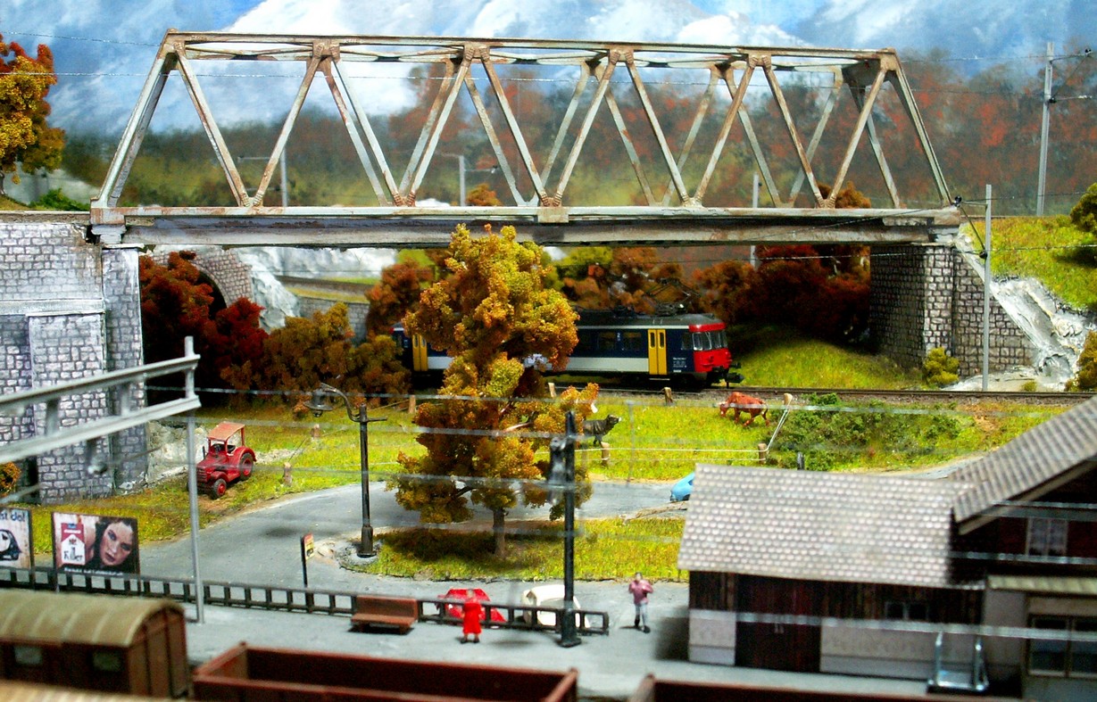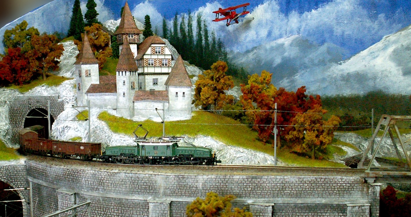 Einige Impressionen von der "Chrüzalp". Eine Berglandschaft auf rund 150 x 70 cm. Auch für diese Anlage habe ich - nebst den Gebäuden versteht sich - die gesamte Fahrleitung im Eigenbau angefertigt.