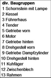 Ich wollte beim Nachbau möglichst viele vorhandene Bauteile aus der "Schrottkiste" verwenden. Es fand sich ein Kessel mit zerbrochenem Führerhaus einer BR65 von Pico, ein Motor von Fleischmann mit beidseitigen langen Motorachsen, sowie div. Schnecken- und Zahnräder. Als nächstes musste ich noch die Drehgestelle bestimmen. Die Wahl viel auf die Drehgestelle einer BR211 von Arnold. Die wurden dann noch kostengünstig bei Ebay ersteigert. Mit diesen vorhandenen Teilen begann ich dann meine Planung.