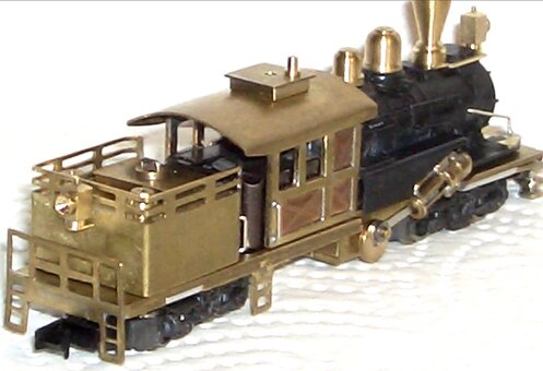 Nachdem der Rahmen mit allen Antriebseinheiten komplett aufgebaut war, wurde aus Messingblech ein Führerhaus und ein Tender gefertigt. Danach wurde der Kessel gekürzt, angepasst und mit den passenden Kesselaufbauteilen versehen. Auch wurden noch Leitern, Lampen, Griffe und sonstige kleine Zurüstteile angebracht. Um das "amerikanische" Aussehen hervorzuheben durfte natürlich auch ein Kuhfänger nicht fehlen.